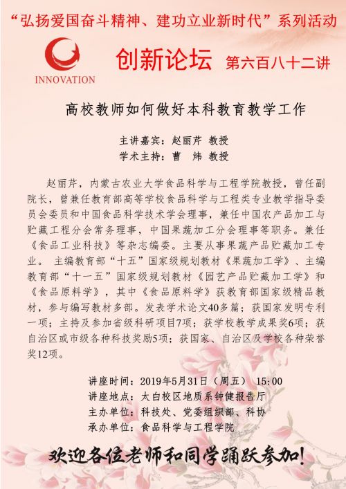 上一条:pp电子官方网站创新论坛第七百零七讲(“弘扬爱国奋斗精神、建功立业新时代”系列活动):食品学科建设是新时代的新的增长点 下一条:pp电子官方网站创新论坛第六百二十五讲(“弘扬爱国奋斗精神、建功立业新时代”系列活动):Green chemistry project aims to create lipids for nutraceutical