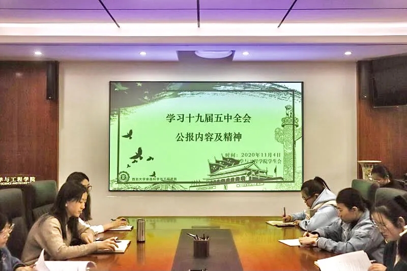 11月4日中午,pp电子官网青马班组织召开学习会,专题学习十九届五中全会精神。院学生会主席团成员孙兢遥领学公报内容,团委书记刘艺洋老师、辅导员周炳莹老师及26名青马班成员参加本次学习会。