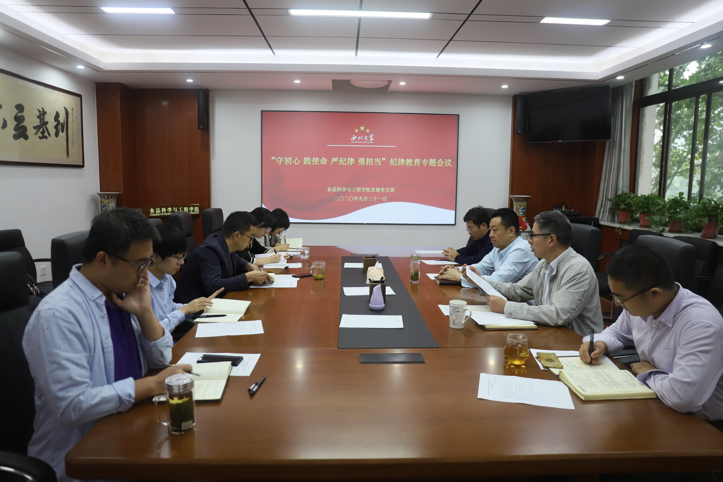岳田利院长结合学校纪律教育学习宣传月活动的要求,就学院开展活动提出了三点意见:一要提高政治站位,切实增强“四个意识”、坚定“四个自信”、坚决做到“两个维护”,深刻认识开展学习教育宣传月活动的重要意义,以高度的政治自觉、思想自觉和行动自觉,投入活动,取得实效。二要着力营造风清气正的学院发展建设环境和育人氛围,正确行使学术权力和行政权力,推进制度和机制建设。三要以纪律教育学习宣传活动良好成效促进学院发展建设,强化和推动人才强院战略和国际化战略的推进和实施。