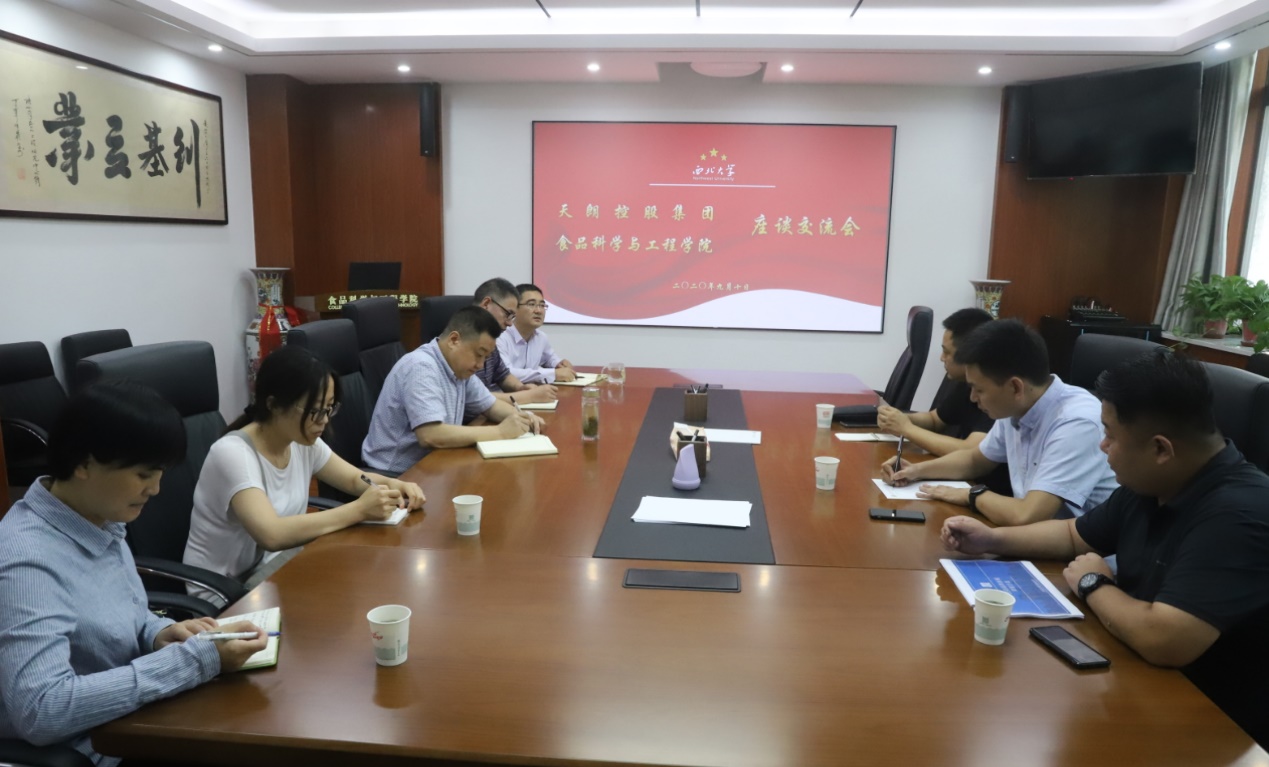 9月10日上午,天朗控股集团朱学亮、宋文漪、杜海平三位部门负责人一行来pp电子官网洽谈合作事宜,岳田利院长、刘晓忠书记、骆艳娥教授、宋微副教授、王媛副教授出席了座谈会,会议由赵会武副院长主持。