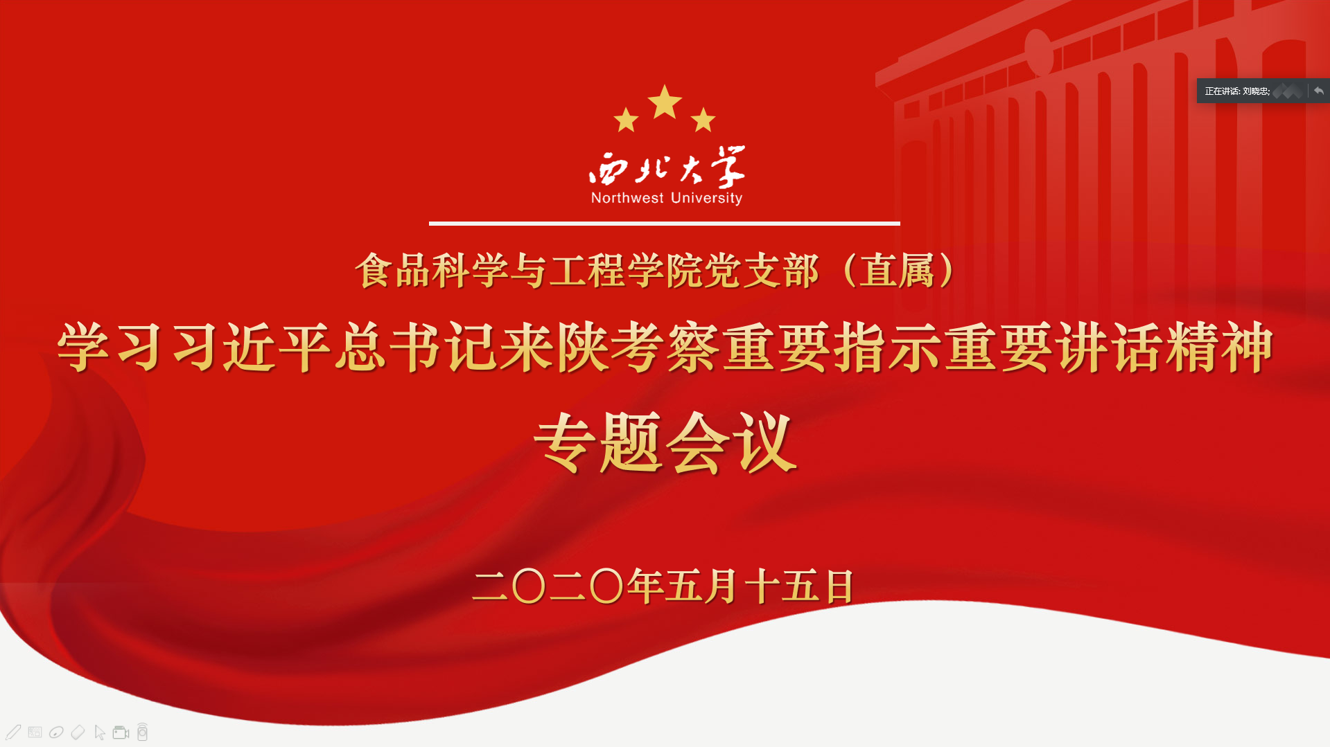 5月15日下午,pp电子官方网站党支部(直属)召开线上专题会议,传达学习习近平总书记来陕视察重要讲话和重要指示精神,学院党支部(直属)书记刘晓忠主持会议。全院教工党员参加会议。