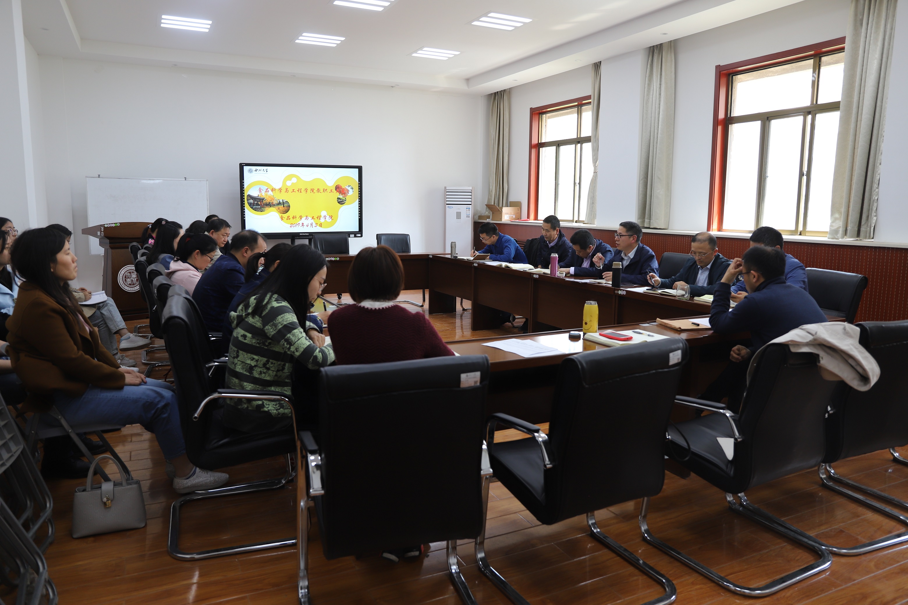最后,岳田利院长还就学院将要承办的2019省食品学会年会、2020年医药与植物中的食品成分等国际国内学术会议进行了安排和具体部署。