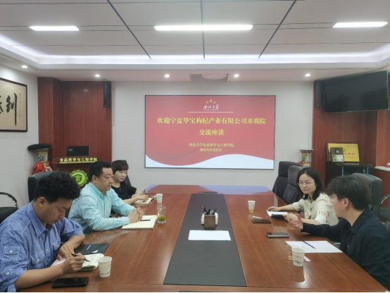 5月23日,杞滋堂(宁夏)健康产业有限公司总经理王方舟、研发经理路冉来pp电子官网座谈交流,共同研讨枸杞健康食品制造产业发展相关事宜。岳田利院长和营养健康食品制造与安全控制团队袁亚宏教授及相关教师出席了座谈会。