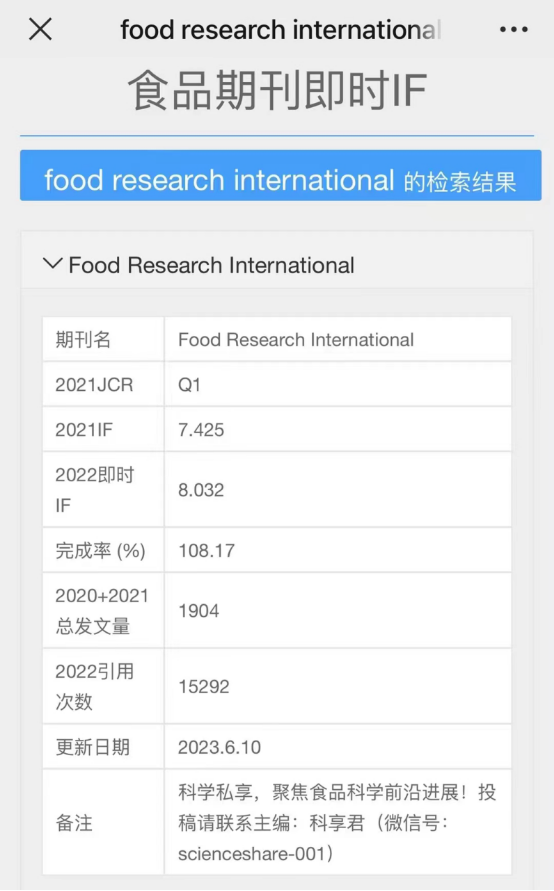 2023年6月以来,《Food Frontiers》IF突破 9,超越FC和FR,迎来了新的发展阶段。