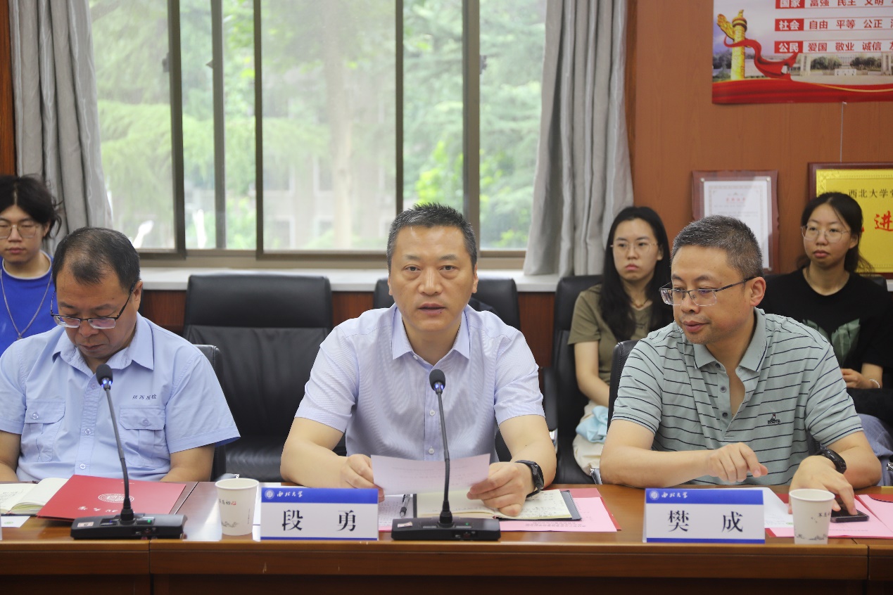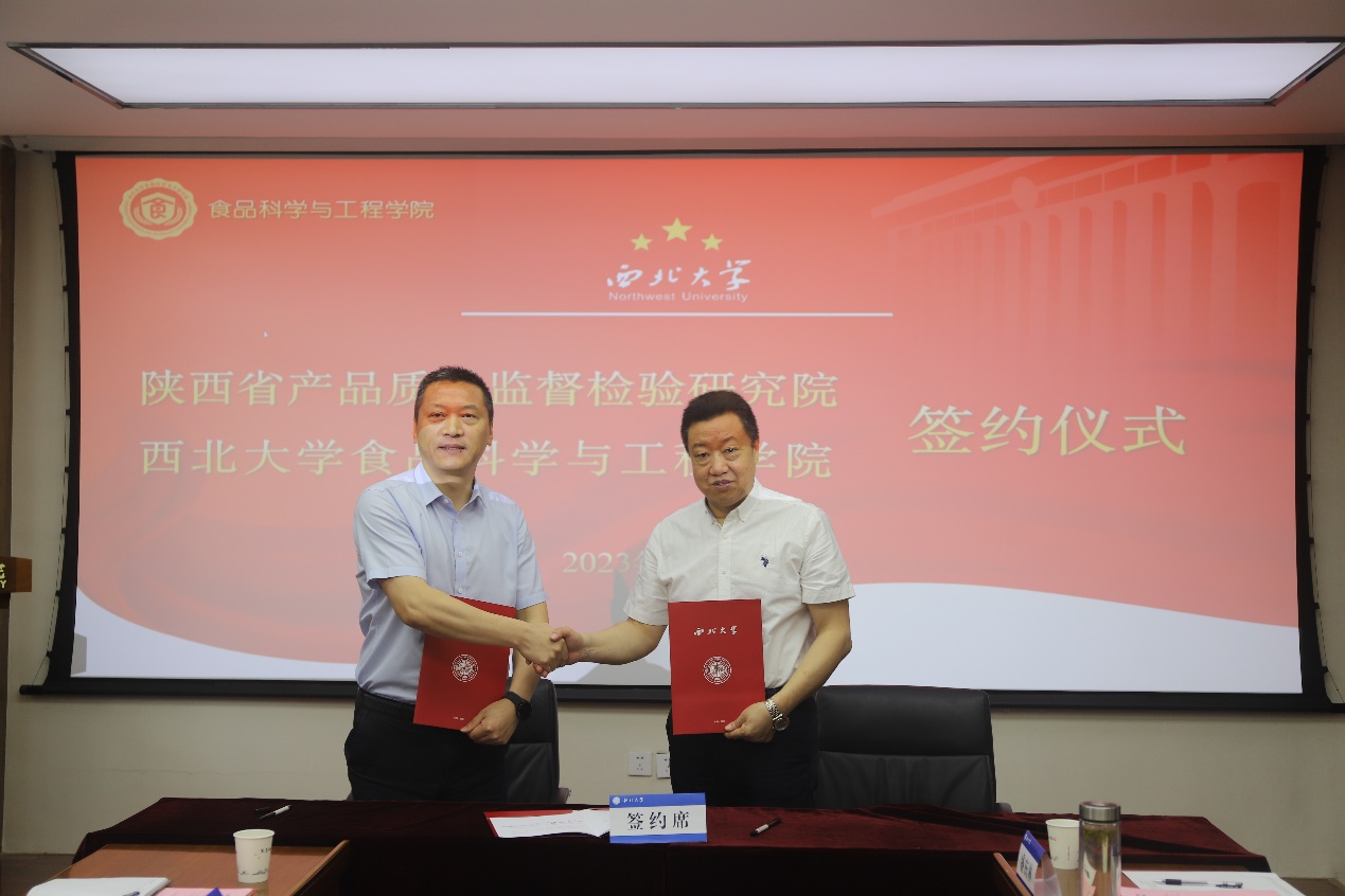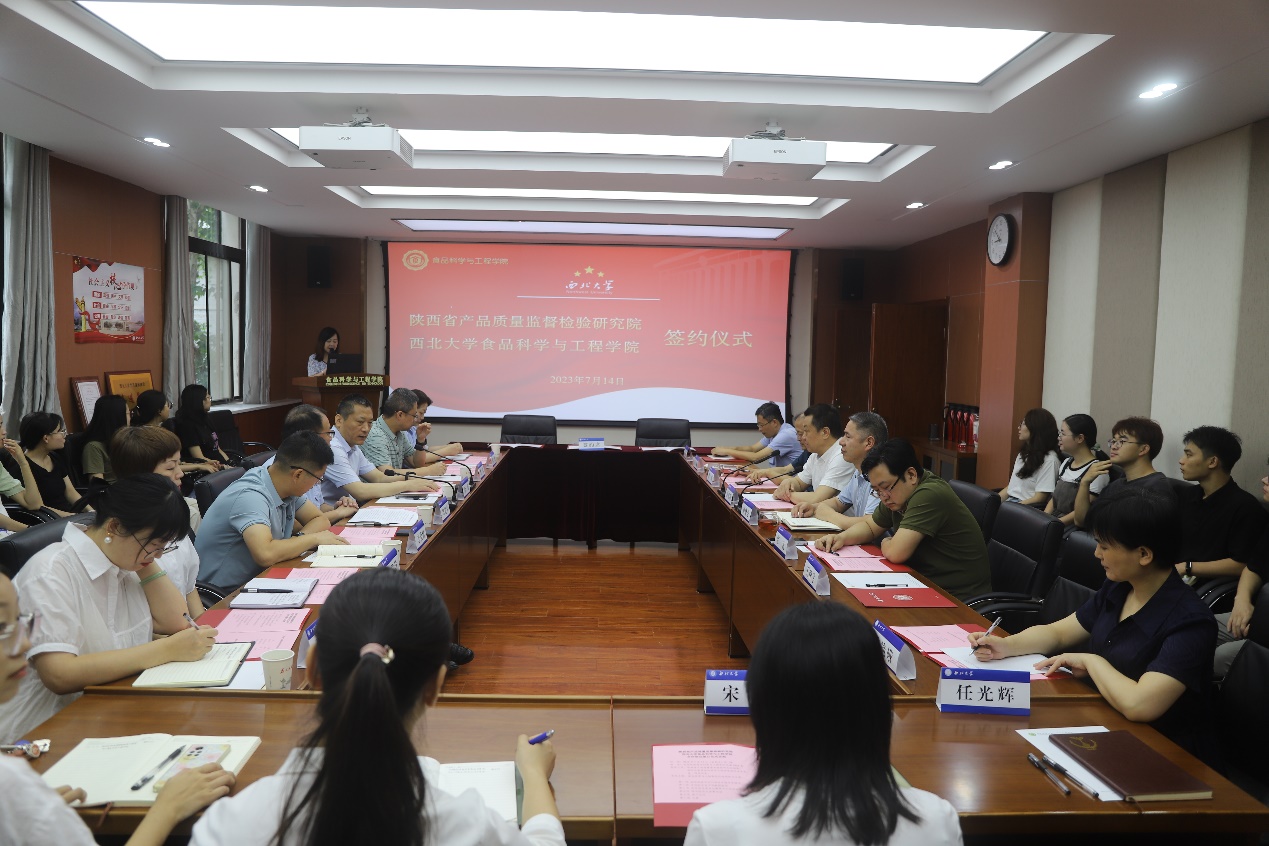 7月14日,pp电子官方网站与陕西省产品质量监督检验研究院战略合作协议签字仪式在pp电子官方网站太白校区pp电子官方网站院楼举行。出席签字仪式的双方领导和成员有陕西省产品质量监督检验研究院院长段勇、党委书记樊育平、农副食品所主任樊成、绿色建材所主任李治纲、化学所副主任郝媛、人力资源部杨君慧、张力丹,pp电子官方网站班子成员、骆艳娥教授、盛庆林教授、宋微副教授等50余名师生代表,签字仪式由马燕副院长主持。