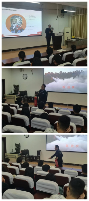 本次活动主要分为安全知识专题讲座、实验室安全应急演练及灭火器使用培训三部分。讲座中,董湃教官详细讲述了实验室安全及宿舍安全相关知识,通过实际案例来引导,告诉我们实验室安全防范的重要性,以及做好实验室安全隐患排查的必要性。同时,他对安全应急演练、消防小常识进行了详细的讲解和培训,对防毒防烟面具等消防逃生器械的正确使用方法进行了培训,董湃教官在培训现场还不断和学生交流互动,以巩固大家学习成果,提高学生的应急救援能力,现场气氛十分活跃,在讲座尾声,董湃教官郑重地告诫大家,实验室安全防护绝对不能抱有侥幸心理,要严肃对待,要时刻具备实验室安全防护意识,做到防患于未然。