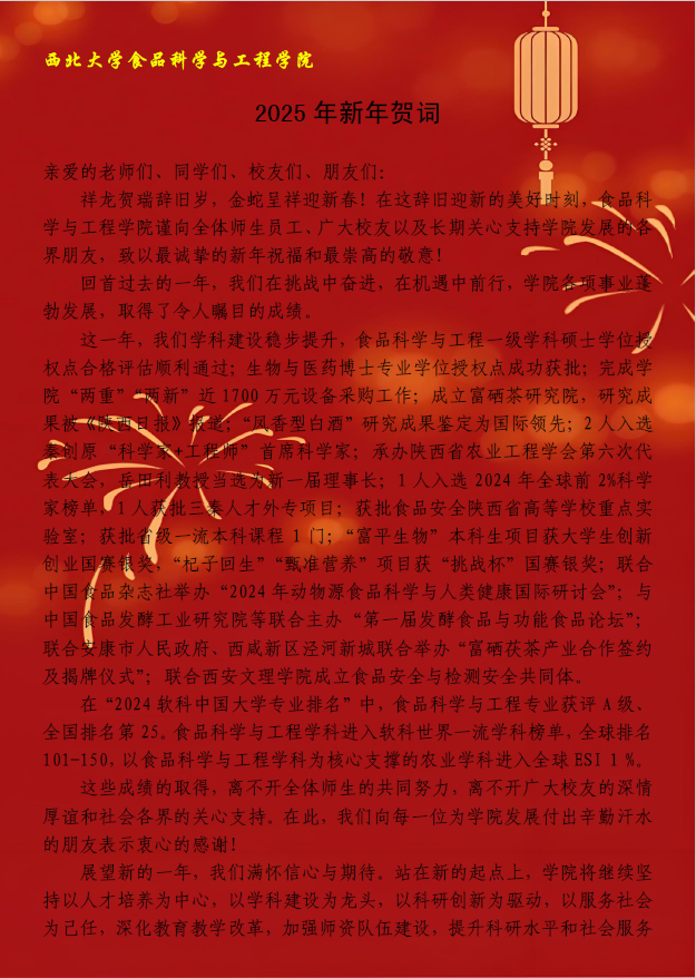 pp电子官方网站成立于2017年,是在2002年成立的pp电子官方网站化工学院食品工程系的基础上,汇集西北农林科技大学食品科学与工程、pp电子官方网站食品科学与工程、生命科学等相关专业的师资力量组建而成。学院现有二级学科博士点1个,一级学科硕士点1个,二级学科硕士点1个。 学院现有专职教师45人,其中教授9人,副教授21人,讲师15人,100%的教师具有博士学位,80%的教师有海外留学经历。教师队伍中有原国务院学位委员会学科评议组专家1人,享受国务院特殊津贴专家1人,教育部新世纪人才2人,陕西省“三五”人才1人,陕西省科技创新领军人才2人和陕西青年科技奖获得者2人。学院拥有“朱蓓薇院士工作站”、“陕西省食品安全风险识别控制技术研究中心”、“陕西省营养健康食品个性制造工程实验室”、“陕西省食品安全与营养健康创新转化平台”和“陕西省蜂产品工程技术研究中心”、“陕西省天然多糖资源利用工程研究中心”等科研平台...