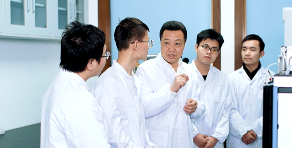 岳田利教授指导学生科研中