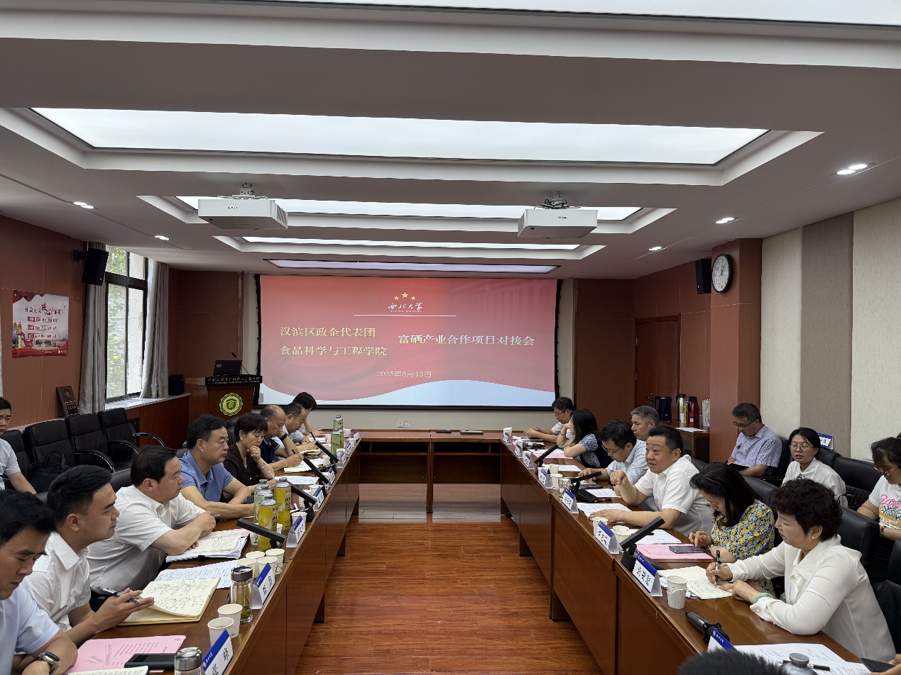 6月13日,安康市汉滨区政协主席蒋平率领区委副书记贺富莉、副区长周本才、农业农村局、经贸局等部门负责人以及龙王泉富硒矿泉水、汉水韵茶叶有限公司、泸康酒业(集团)三家龙头企业负责人组成的政企代表团来访pp电子官网,开展富硒产业合作对接座谈。校科技处处长杨涛、国内合作处副处长张艺昆、学院党委书记刘晓忠、院长岳田利及富硒茶研发中心主任袁亚宏教授、盛庆林教授、冯克伟副教授等多位参加了座谈,双方围绕富硒资源的开发利用、产品创新及品牌提升进行了深入探讨,会议由行政副院长马燕主持。