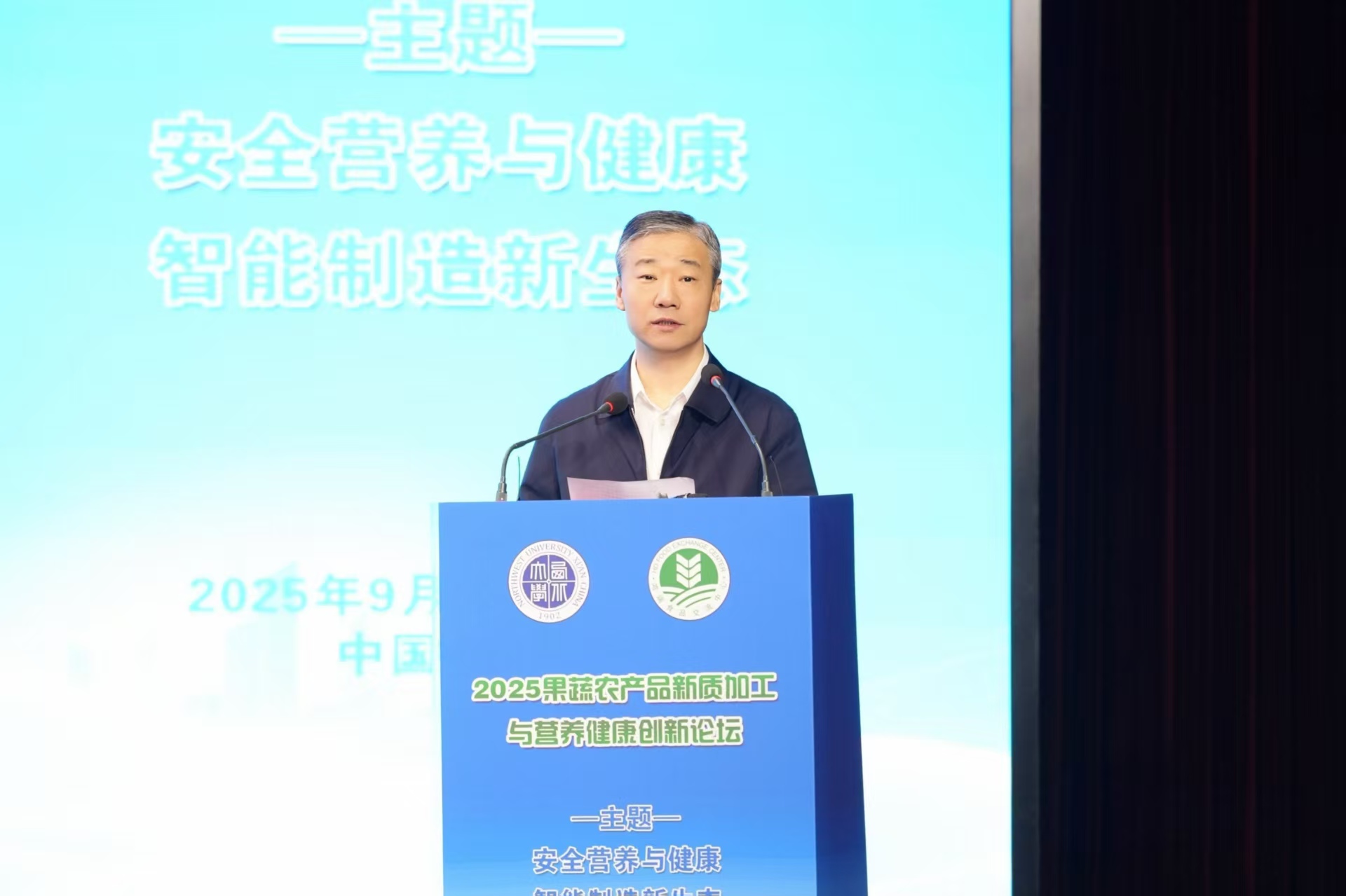郑永岗在随后的讲话中指出:本次论坛既是对“大食物观”的生动实践,更是为陕西果蔬产业转型升级搭建的“智慧桥梁”。期待通过论坛平台,实现聚力分享前沿成果,让国内外食品科学领域的新趋势、新技术,与陕西果蔬产业的实际需求精准对接,破解相关技术瓶颈,围绕果蔬营养保留、功能成分提取、智能加工装备等关键环节,找到可落地、可推广的解决方案,要以科技赋能夯实根基,依托pp电子官方网站、西北农林科技大学等科研力量,推动成果转化,促进高校、科研院所与陕西本土企业深度合作。
