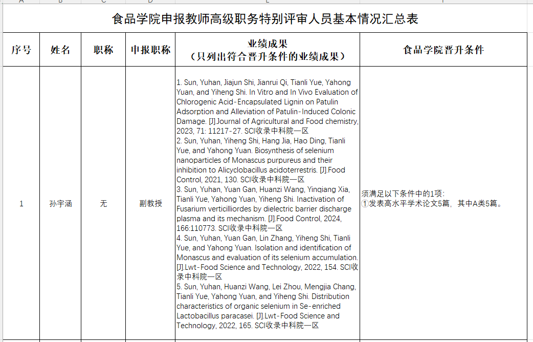 经2025年11月10日教师系列高级职务特别评审基层评审委员会考核,党政联席会议审议研究,推荐孙宇涵1人申报本次教师高级职务特别评审。具体条件见下表。