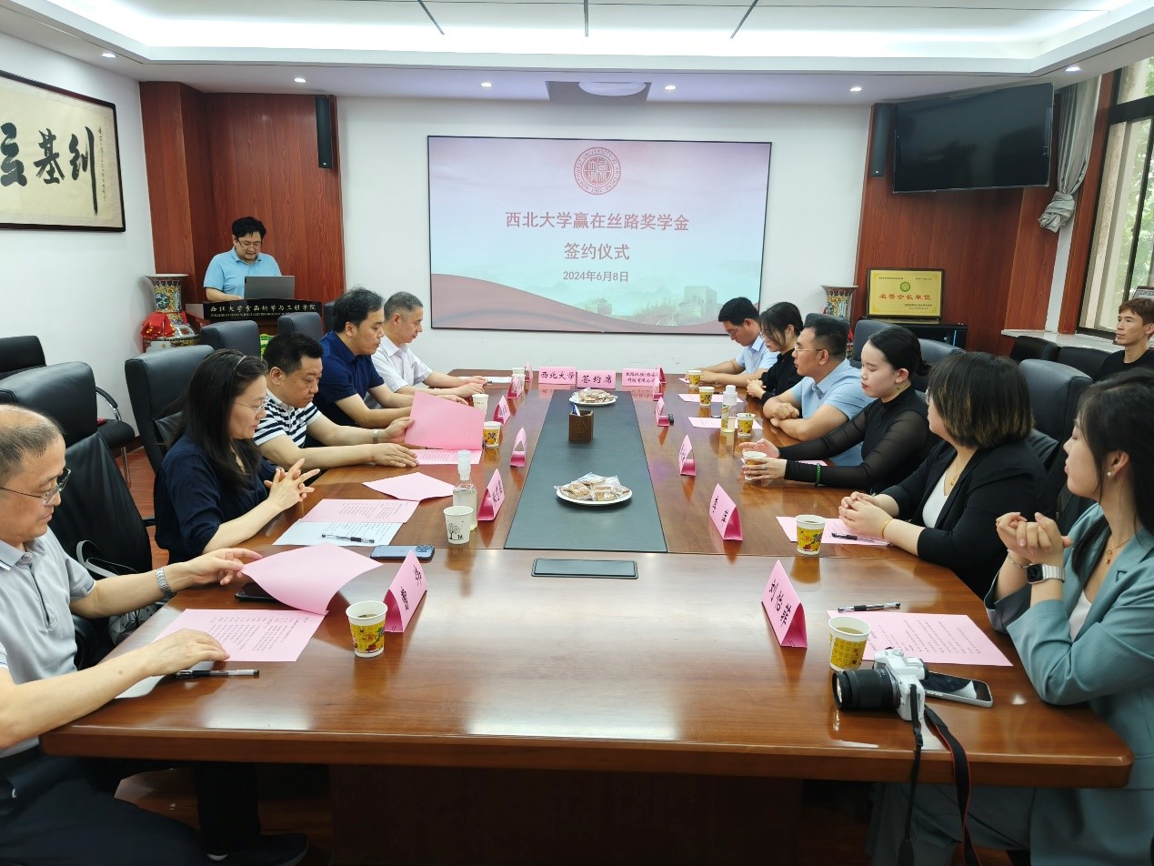 6月8日下午,pp电子官网在太白校区举行“赢在丝路”奖学金签约仪式。“赢在丝路”奖学金由pp电子官网食品科学与工程专业2004级校友、丝路纵横(西安)科技有限公司总经理师晓东捐资设立。师晓东,pp电子官网学工部、国内处相关负责人,pp电子官方网站党政负责人及企业、师生代表共计20余人参加签约仪式。