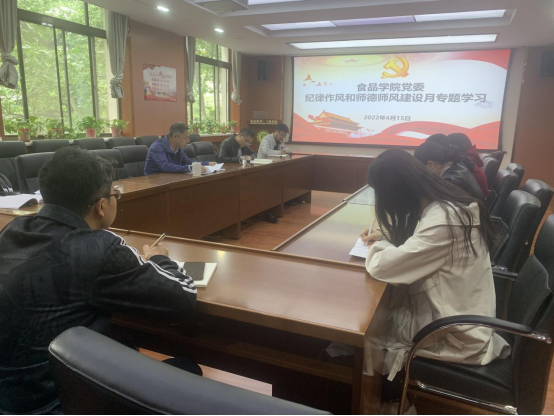 为进一步落实全面从严治党要求和立德树人根本任务,不断加强干部和教师队伍素质能力建设,推动学院“十四五”事业发展和食品学科建设,4月15日上午,学院党委组织召开党委委员扩大会议,专题学习纪律作风和师德师风建设有关内容。学院党委委员、各党支部书记参加会议,会议由学院党委书记刘晓忠主持。