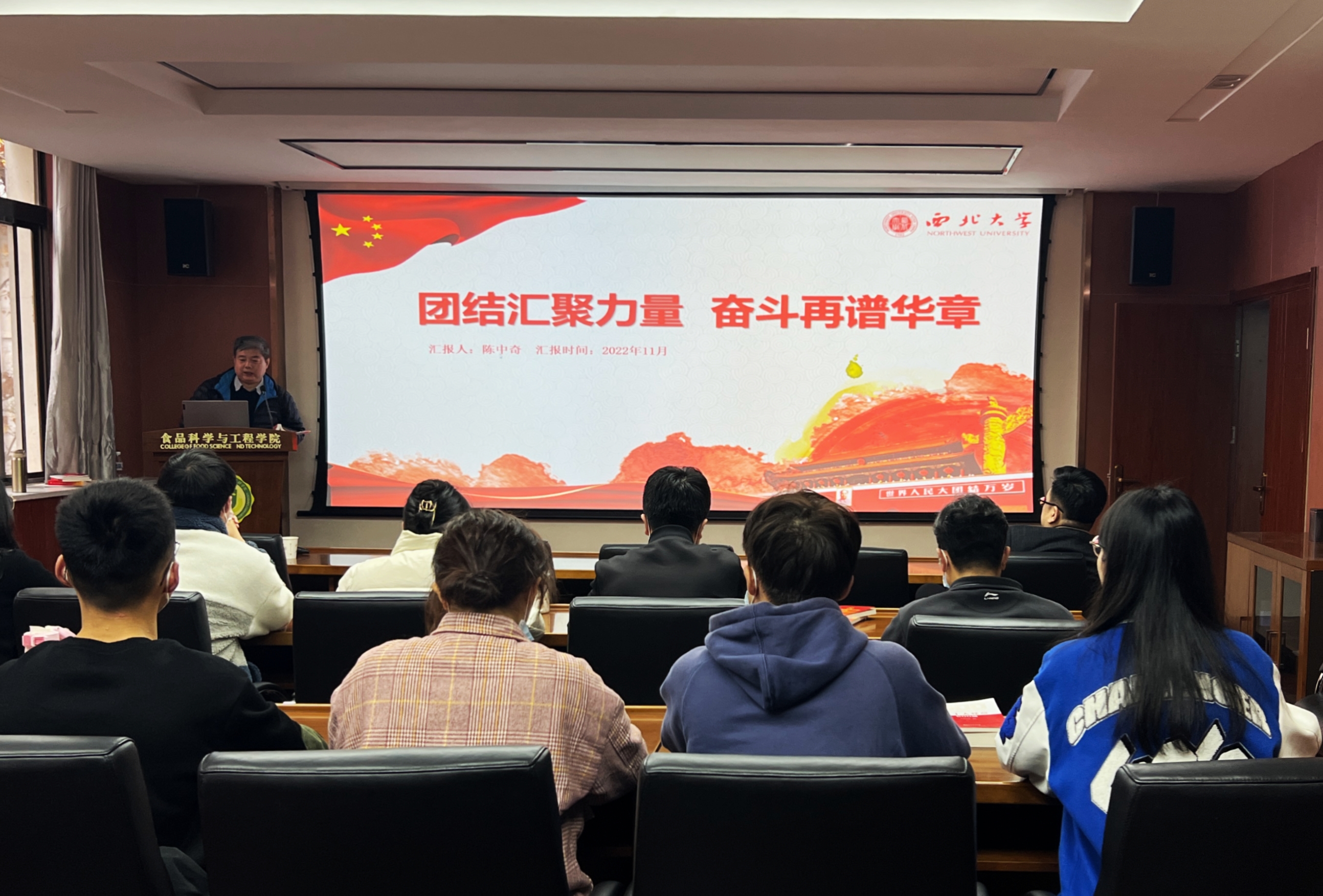 11月24日,学院党委理论学习中心组召开党的二十大精神专题学习(扩大)会,邀请校党的二十大精神宣讲团成员、马克思主义学院陈中奇教授作《团结汇聚力量 奋斗再谱华章》辅导报告。学院党政班子成员、党委委员、工会主席、科级干部、党支部书记和委员、学生工作干部和学生骨干等参加会议。会议由学院党委有关负责人主持。