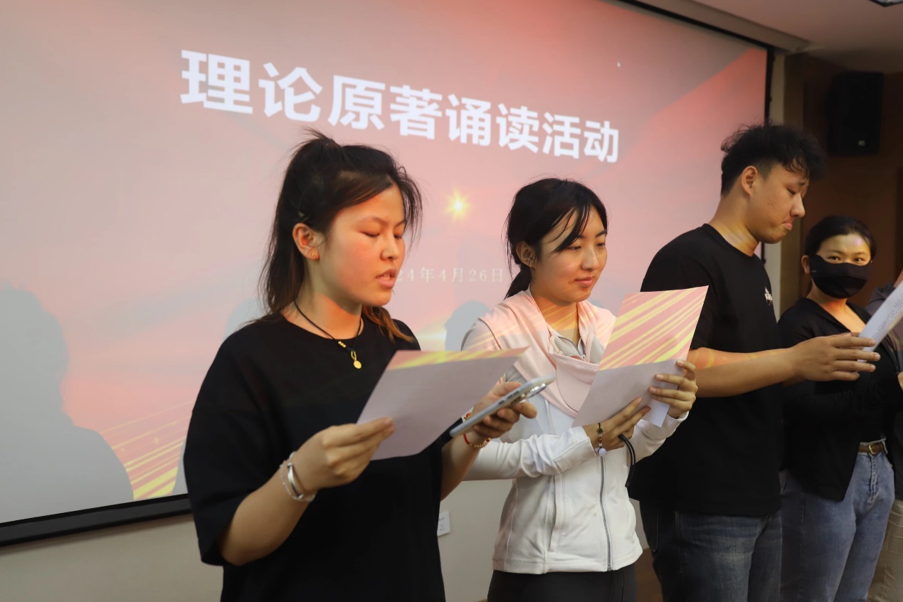 一、持续加强思想政治教育。一是深化理论学习。组织团员青年集体学习习近平总书记五四青年节对全国广大青年寄语精神,教育引导大家深刻理解青年一代的使命与担当,引领团员青年将学习成效转化为建功立业行动,坚定为实现中华民族伟大复兴的中国梦贡献青春力量的决心。二是创新方式方法。组织开展“读原著、学原文、悟原理”理论原著诵读活动。同学们分组诵读篇目《毛泽东选集》《共产党宣言》《习近平与大学生朋友们》等著作中的文章,深刻体会原著段落、语句中蕴含的浓烈的红色精神、智慧和远大理想,在分享中领会经典原著中蕴含的蓬勃的生命力和奋斗动力。