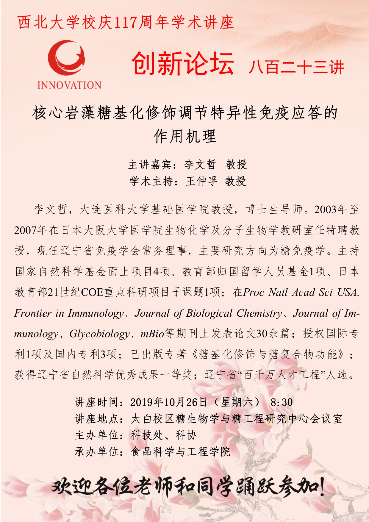 pp电子官方网站创新论坛第八百二十三讲暨校庆117周年学术讲座:核心岩藻糖基化修饰调节特异性免疫应答的作用机理